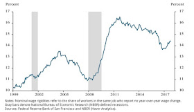 As I noted several weeks ago, even though we are at least closing in on full employment, the percentage of employers not raising wages at all has gone up in the last year: