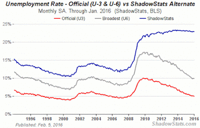 But that's not the best part. Next, Johnson quotes Shadowstats. Yes, he actually relies on data from Shadowstats. Johnson even uses a graph from the website that shows a "real" unemployment rate of about 22.5%. Note to Mr. Johnson: SS was debunked about 8 years ago by James Hamilton (a leading economist, BTW) and the BLS. In quoting SS, you've basically demonstrated that you have no idea what you're talking about.