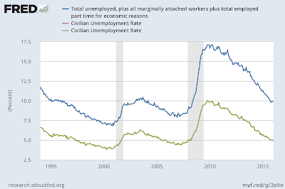President Obama made an appearance in the White House press room on Friday to take a victory lap over the fall of the official unemployment rate (U-3) to 4.9 percent (video below, about 15 minutes). Is that number for real? Referring to the hell he saw tending to wounded men during the Civil War, Walt Whitman held that “the real war will never get in the books.” By the same token,I wonder if the real unemployment will ever get in the books.