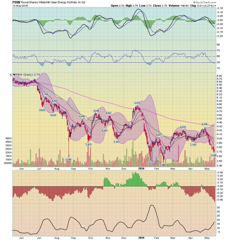Although both the daily chart (top chart) and weekly chart (middle chart) recently printed negative candles, they remain in uptrends. The ETF’s advance/decline line (bottom chart) is rising.